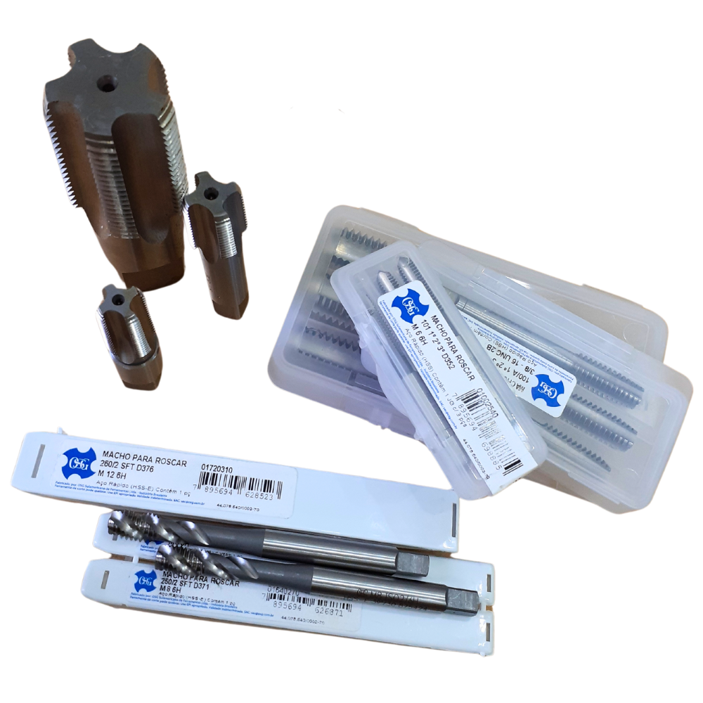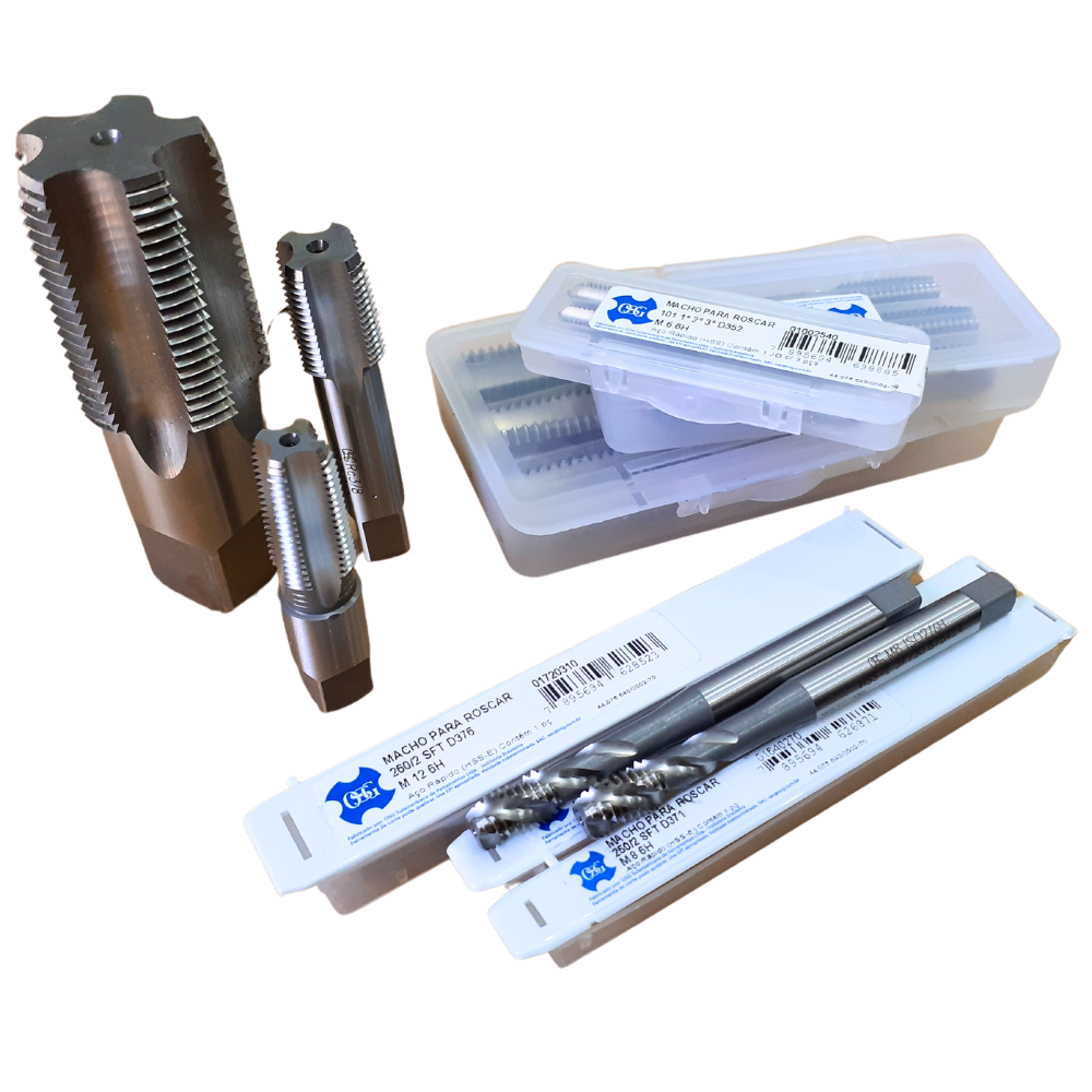 Normalmente vendido em jogo de 2 ou 3 peças para execução gradual da rosca.